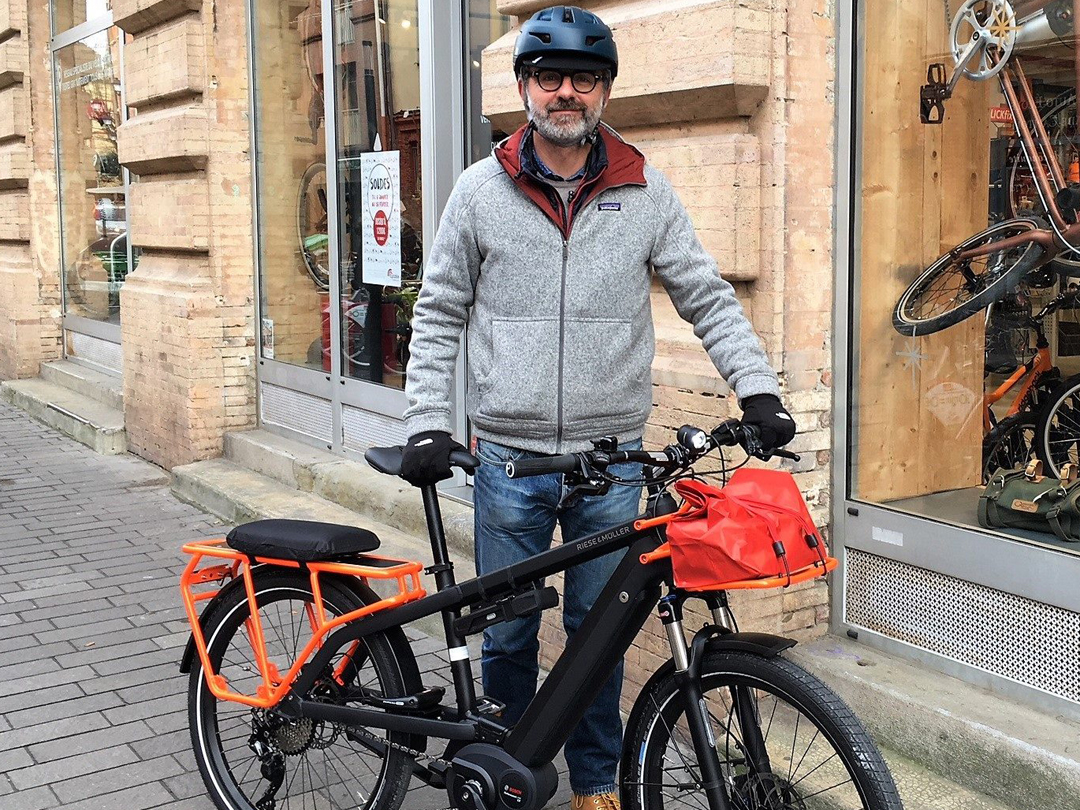 Ébéniste, son véhicule utilitaire est un vélo cargo