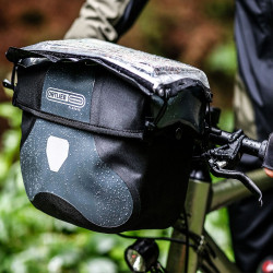 La sacoche de guidon Ortlieb Ultimate Six Classic s'installe idéalement sur un vélo de randonnée. Elle est disponible en 2 versions : 5L ou 6.5L.