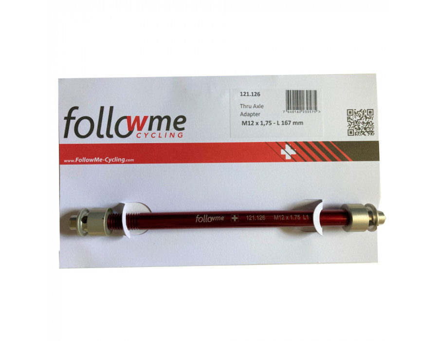 Ce nouvel axe M12x1.75 est un solide axe traversant qui permet d'atteler sans problème le FollowMe, grâce aux supports intégrés aux extrémités. Il se monte à la place de votre axe traversant Sram/Maxle d'origine (le pas de vis est identique).