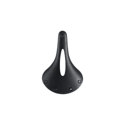 La selle Brooks Cambium C19 Carved ménage une ouverture centrale, qui permet de soulager la région du périnée d'une pression inconfortable. Son revêtement en nylon est riveté, et repose sur un caoutchouc naturel vulcanisé souple. Très robustes, les rails sont en acier.