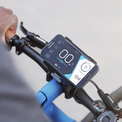 Cintres de 22,2, 25,4 et 31,8 mm de diamètre, potence large de 54 mm max et de 60 mm de diamètre max. Écran de smartphone de 4" à 6". iOs et Android
