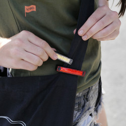 En mode vélo, il suffira d'utiliser l'un des 2 élastiques (diamètre 22-27mm ou 28mm-32mm et plus) pour le monter sur votre vélo puis à utiliser l'aimant pour clipser l'éclairage et support. En running, elle pourra se porter sur tous vos vêtements, simplement en l'accrochant comme un trombone sur une feuille de papier.
