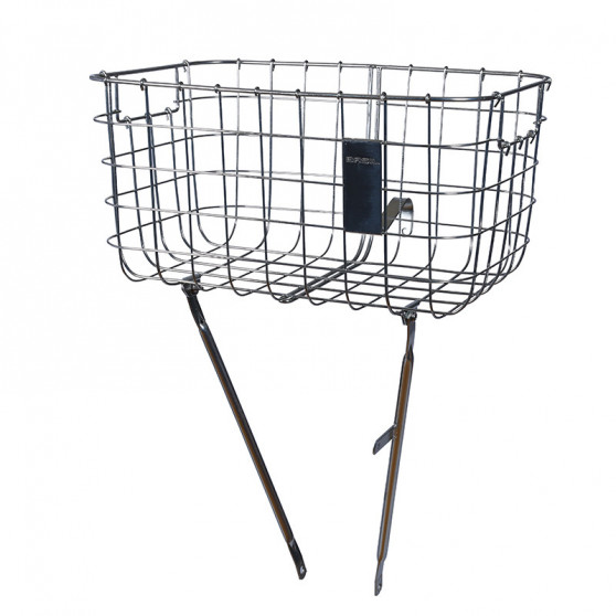 Ce panier de vélo avant Basil Robin présente une structure en acier, avec un compartiment qui offre un volume de rangement très confortable de 27 litres et une capacité de charge impressionnante de 10 kilos. Le panier repose sur 2 bras terminés par des trous, à fixer sur l'axe de la roue avant (largeur 12/13 mm). Un bras intègre même un support pratique pour un éclairage.