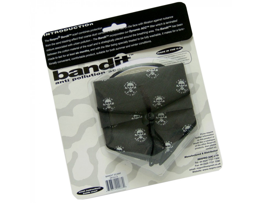 Le foulard anti-pollution Respro Bandit Scarf est une alternative au traditionnel masque. Il se porte à la manière d'un foulard classique et a l'avantage d'accorder au cycliste un look plus urbain et passe-partout au quotidien, à la différence du masque.