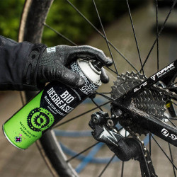 Le dégraissant Muc-Off DeGreaser Bio s'utilise sur toutes les parties du vélo où la graisse a tendance à s'accumuler, comme la cassette.