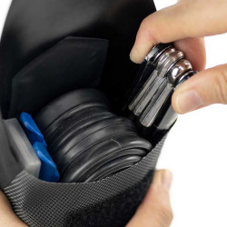 Son compartiment permet de ranger l'essentiel : deux chambres à air, des démonte-pneus, un multi-outils compact... Tout le contenant est bien protégé grâce à l'utilisation d'un matériau imperméable et durable, très résistant à l'usure et à l'abrasion.