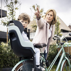 Le porte-bébé arrière sur cadre Bobike GO Maxi s'installe directement sur le tube de selle de votre vélo. Il vous permet de transporter en sécurité votre enfant, notamment en ville.