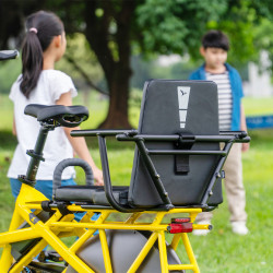 À noter : Quand il est installé sur le vélo cargo électrique Tern GSD, l'assise du Captain's Chair offre suffisamment de place pour 2 jeunes enfants. Celui (celle) qui est assis devant doit pouvoir prendre appui avec les mains, sur les barres de maintien Sidekick Joyride Bars. Sur le HSD, le Quick Haul ou le Short Haul, le Captain's Chair n'offre qu'une seule place assise.