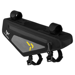 Elle est attachée sur 4 points à l'intérieur du triangle avant, avec 2 attaches velcro renforcées en Hypalon et 2 boucles Woojin. La fixation réversible permet de s'adapter à l'angle du cadre, contre le tube de direction.