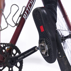 Développées avec Panaracer, marque référence du pneu vélo, la semelle en caoutchouc vulcanisé est remarquablement durable. Entre la semelle externe et la semelle interne, une tige en nylon renforce la rigidité sous le pied, pour favoriser le transfert de puissance vers la pédale. La cale se fixe sur cette tige en nylon.