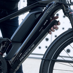 Ce Speed Bike Moustache Friday 27 FS Speed Dual utilise une double batterie Bosch avec un système de gestion intelligent. Le vélo est équipé d'un PowerTube de 625 Wh (intégré) et d'un PowerPack de 500 Wh (sur le tube diagonal). Il est tout à fait possible d'utiliser le PowerTube seul. Les batteries se rechargent simultanément, directement sur le vélo.