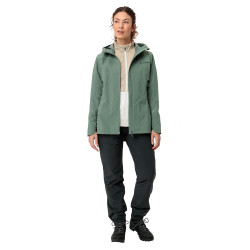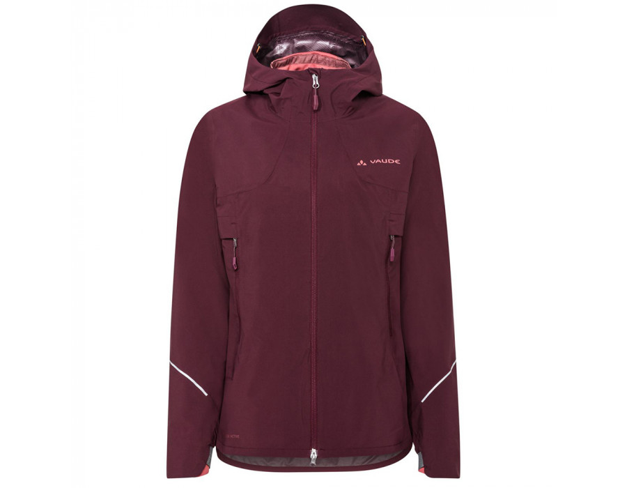 Cette veste vélo femme Vaude Yaras 3in1 propose des manches préformées, une capuche réglable avec un col haut, des zones d'aération, des éléments réfléchissants et des poches étanches.