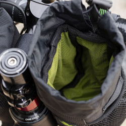 Si elle ne contient pas un bidon ou une bouteille, la sacoche Bud sert à ranger de la monnaie, un appareil photo ou tout autre objet que vous souhaitez garder à portée de main. La fermeture avec cordon de serrage élastique est très pratique.