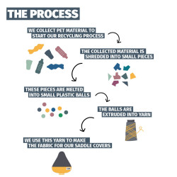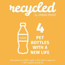 Ce couvre-selle Urban Proof utilise un tissu 100 % recyclé - du polyéthylène recyclé (RPET). Cette matière très résistante à l'eau et aux rayons UV est obtenue grâce au recyclage de bouteilles plastiques (la marque précise que 4 bouteilles PET sont réutilisées pour fabriquer un couvre-selle).