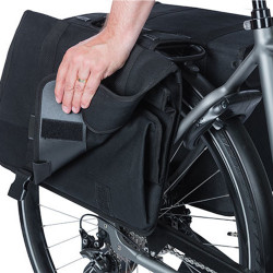 Ces sacoches Basil se replient facilement quand elles sont vides, elles n'encombrent pas au moment de ranger le vélo dans un local étroit ! Des applications velcro maintiennent les sacoches repliées.