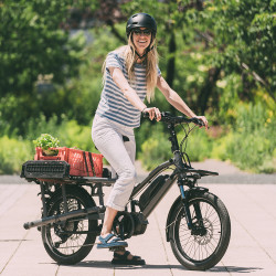 - Le modèle Active Edition : cette configuration inclut une sacoche avant étanche pour transporter vos affaires lors de vos trajets par mauvais temps, qui sert aussi de protection au Bread Basket. Une housse Wrap & Go conçue pour charger et transporter en toute sécurité. Enfin, un deck idéal pour créer une assise confortable ou devenir une plateforme de chargement supplémentaire et solide. Profitez de cette édition pour acquérir un vélo cargo électrique complètement équipé ! Venez la tester en magasin.