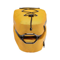 La sacoche est organisée en 2 compartiments séparés. Ils reçoivent des vêtements compactables, des chaussettes, de l'outillage, des chambres à air, etc. On vous conseille de placer le contenu le plus lourd dans la partie inférieure, sachant que la sacoche et son support KlickFix admettent un poids limite de 3 kg. Le filet élastique extérieur est aussi bien pratique pour maintenir un vêtement.
