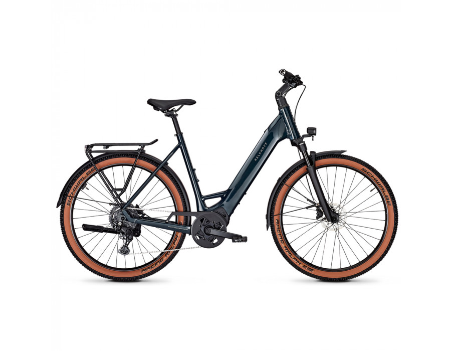 Le vélo de randonnée électrique Kalkhoff Entice L Advance accueille tout type de pratiquant(e), de l'urbain pressé au baroudeur sportif. Le vélo s'adapte au profil de son propriétaire, avec la potence ajustable qui lui permet de trouver l'appui le plus juste au niveau du guidon (plus ou moins haut). Le vélo reçoit des pneus VTT Schwalbe Racing Ralph taillés pour l'aventure, avec une bonne largeur et des crampons latéraux qui sécurisent la tenue en virage sur les chemins de randonnée. Leur profil sur la bande de roulement préserve aussi le rendement sur sol dur. Kalkhoff monte des composants Shimano fiables, des freins à disque MT200 et un dérailleur Cues à 9 vitesses. Ils sont accompagnes d'un lot d'accessoires complet, avec des garde-boue, une béquille, un porte-bagages arrière MIK et des éclairages LED Herrmans. Le phare, avec sa lumière de 140 lumens, vous permet de rouler en toute sérénité de nuit, dans un environnement urbain bien éclairé.
