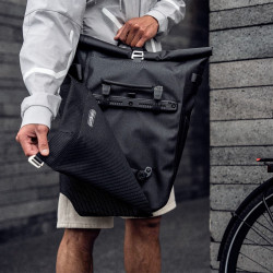 La finition High-Vis Black Reflex est impressionnante d'efficacité. Le fabricant est parvenu à intégrer du fil réfléchissant dans le tissage même du matériau Cordura, formant ainsi une trame dense et unie qui réagit à la lumière. Vous attirez tous les regards et signalez bien mieux votre présence de nuit, sous la pluie ou dans les environnements sombres, que vous portiez le sac sur le dos ou le positionnez sur le porte-bagages arrière.