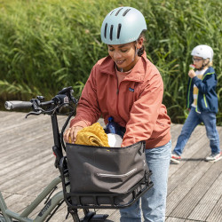 Un impressionnant sac étanche de 45 litres, à installer sur le porte-bagages avant de votre vélo cargo Tern. + de détails