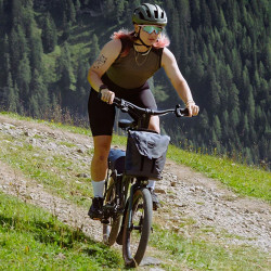 L'Essentials Bag de Brompton est équipé d'un rabat à fermeture magnétique Fidlock. La fenêtre aménagée sur le dessus permet d'accéder au panneau de commande de la batterie. Vous avez deux poches extérieures zippées et deux poches latérale stretch-mesh.
