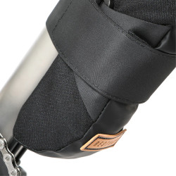 La sacoche de cadre Restrap Downtube Bag s'installe sans outil. Le système de fixation est intégré. Vous avez une attache velcro qui vient solidement ceinturer la sacoche sur le tube. La partie en contact avec le cadre a une finition spéciale qui empêche le bagage de glisser. La mise en place et démontage ne prennent que quelques instants.