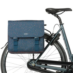 La sacoche double Basil Flair est pensée pour un usage quotidien à vélo, dans un contexte urbain. Son style unique, avec son imprimé moucheté vert ou bleu, matche avec les vélos modernes et raffinés. Avec sa double capacité, elle peut transporter des courses en quantité, un pique-nique complet, tout ce qui peut vous servir au cours de la journée, des affaires de bureau et de sport. Cette double sacoche vous accompagne aussi en-dehors de la ville, pour les escapades du weekend à vélo.