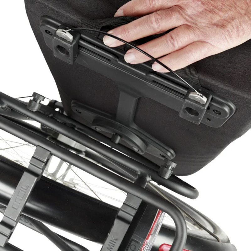 Une sacoche du quotidien, pour la vie à vélo en ville, avec une fixation MIK Studs sur porte-bagages. + de détails
