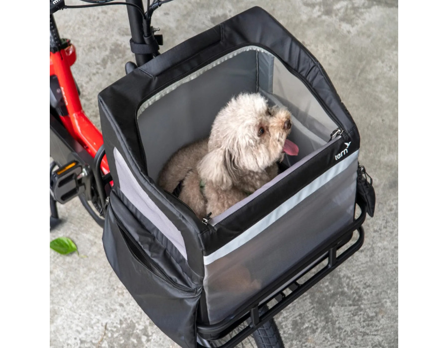 Le panier de transport pour chien Tern RuffHouse permet d'aménager une place de choix, aux premières loges, pour votre petit compagnon à 4 pattes. Ce panier se fixe au Transporteur Rack, à l'avant de votre vélo électrique Tern (modèle GSD, HSD, Quick Haul ou Short Haul).