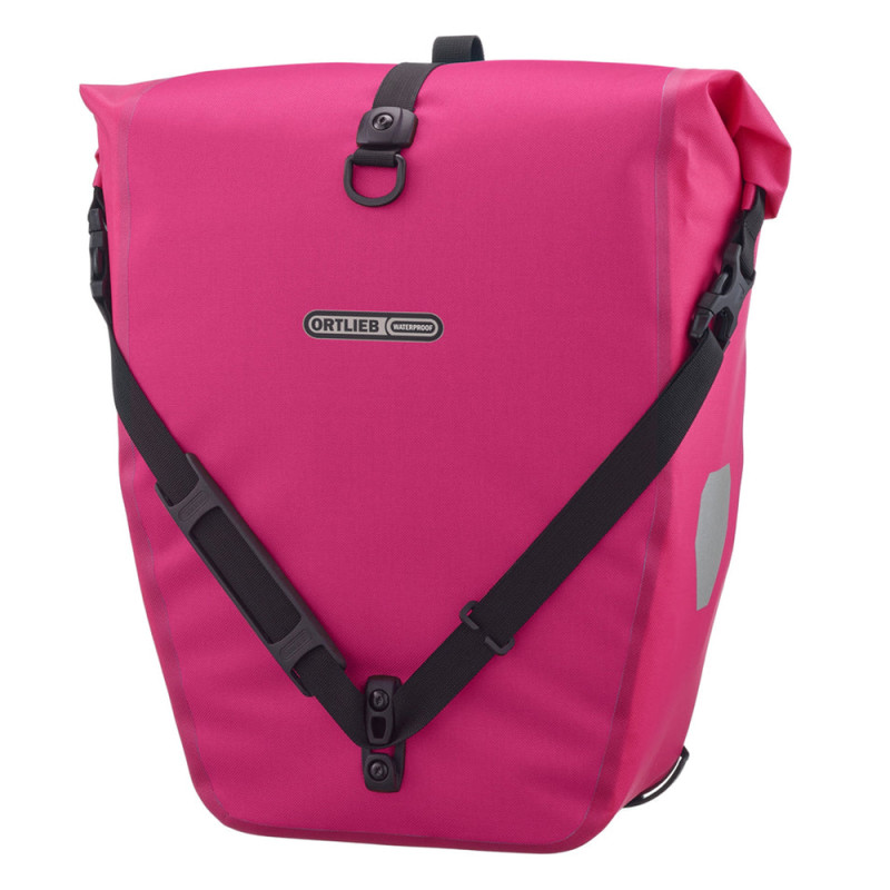 La sacoche de vélo arrière Ortlieb Back-Roller Cyber bouscule les codes en introduisant des couleurs éclatantes, du rose et du turquoise, encore jamais vues sur la série. Cette sacoche tendance et polyvalente renforce votre visibilité. Vous pouvez l'utiliser en ville et en rando.