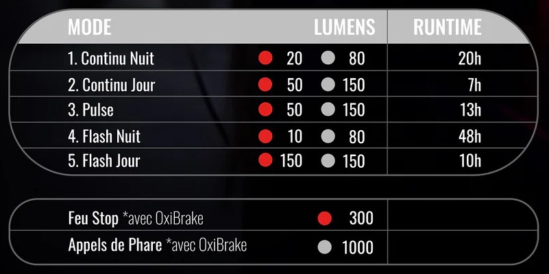 Technologie sans fil OXI 2.4 GHz pour activer les clignotants, les warnings, le feu stop et les appels de phare