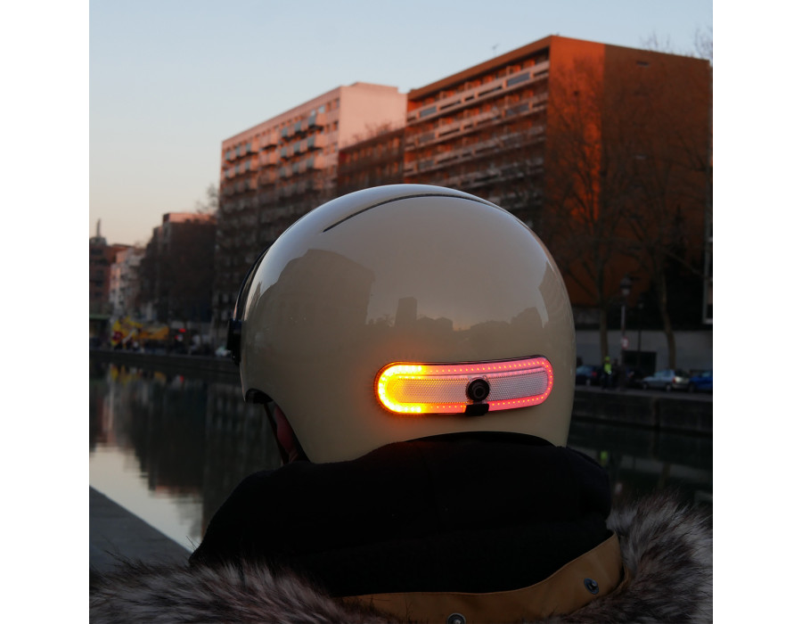 Un éclairage arrière, avec double fonction clignotant et feu stop, à installer sur n'importe quel casque. + de détails