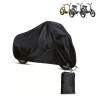 La housse est conçue dans une grande toile polyester Oxford, bien résistante. Imperméable, elle bloque facilement la pluie, la neige et la poussière. Elle s'occupe même des rayons UV. Vous pouvez l'utiliser à la maison, au garage, dans le local à vélos, dans la rue, etc. De solides anneaux métalliques permettent de passer un antivol à travers la roue avant.