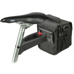 Ce support reprend le système breveté KlickFix, qui reçoit n'importe quel panier ou sacoche compatible. Le support est composé d'une extension légèrement surélevée pour ne pas risquer de toucher la roue arrière. La fixation sur la tige de selle est assurée par un collier en métal à visser. Les tiges de 25 à 32 mm de diamètre sont compatibles.