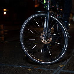 Des pièces réfléchissantes à clipser sur les rayons des roues, pour bénéficier d'une visibilité à 360°. + de détails