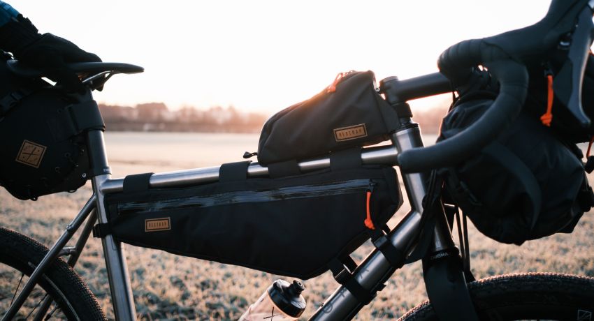 C’est un des atouts majeurs du bikepacking. Pas besoin de porte-bagages pour emporter vos sacoches, ni, par extension, d’œillets de fixation sur votre cadre. Là où le cyclotourisme traditionnel et ses volumineuses sacoches cavalières requiert l’utilisation d’un vélo robuste spécifiquement taillé pour les exigences du touring, le bikepacking s’accommode de n’importe quelle monture. Y compris celles qui ne sont, à l’origine, pas du tout prévues à cet effet. Grâce au mode de portage bikepacking, un VTT ou un vélo de route, même en carbone, peut devenir un fidèle partenaire d’échappée au long cours. Le vélo que vous possédez déjà est donc, très certainement susceptible de se transformer en compagnon de voyage… à condition que vous acceptiez de jouer la carte du minimalisme côté équipement.