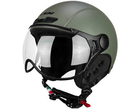 Un modèle urbain inspiré des casques de moto, avec visière et cache oreilles. Il est certifié pour le vélo électrique et le ski.